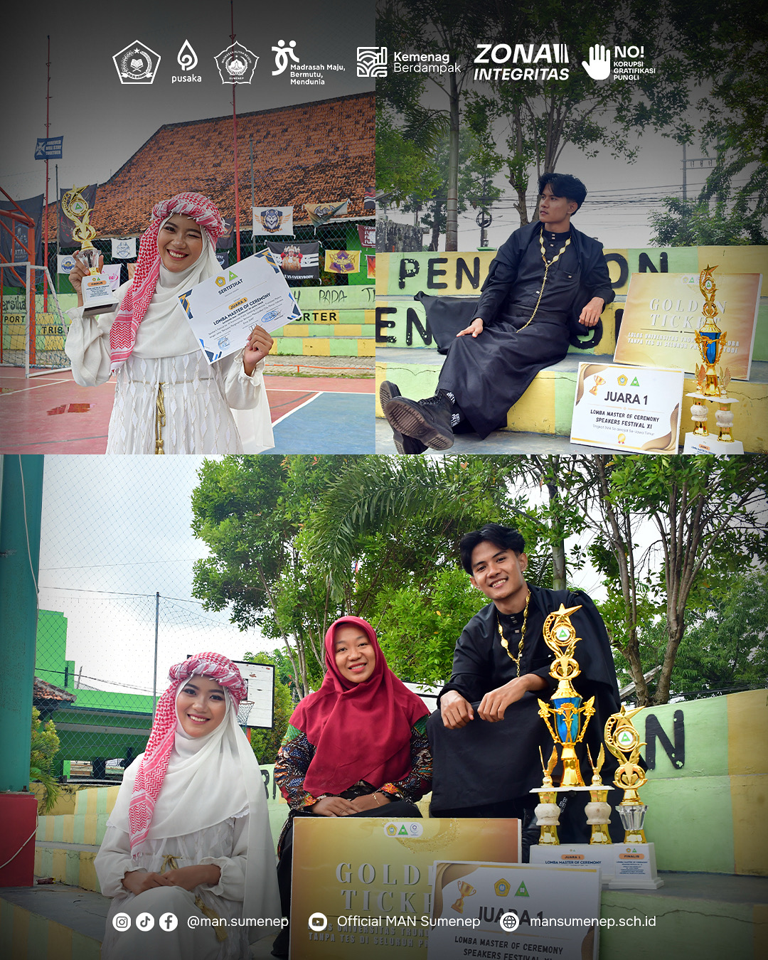 MAN Sumenep – Jurnalistik - Prestasi membanggakan berhasil ditorehkan oleh Riki Fahrul Andika (XII-C) dan Azizah Raudlatul Jannah (XII-A) peserta didik MAN Sumenep, dalam ajang bergengsi Speakers Festival XI Tingkat SMA/SMK/MA se-Jawa Timur yang diselenggarakan oleh Universitas Trunojoyo Madura (Jumat, 12/12/2025). Riki menyabet Juara 1 dan Azizah berhasil meraih Finalis Terbaik Lomba Master of Ceremony (MC), mengalahkan puluhan peserta terbaik dari seluruh penjuru provinsi Jawa Timur. Kompetisi yang digelar untuk menguji berbagai aspek kemampuan kepemanduan, mulai dari teknik vokal, improvisasi, penguasaan panggung, hingga kemampuan berkolaborasi. Kepala MAN Sumenep, Drs. Zaini Mukhsin, menyambut kemenangan ini dengan penuh kebanggaan. Beliau menegaskan bahwa prestasi ini bukanlah keberhasilan yang instan, melainkan buah dari ekosistem literasi dan publik speaking yang sengaja dibangun di madrasah. "Kemenangan Riki dan Azizah ini adalah bukti nyata bahwa ekosistem literasi dan budaya public speaking yang kita bangun mulai berbuah manis. Di MAN Sumenep, siswa tidak hanya didorong untuk pandai secara akademis, tetapi juga diberi ruang untuk mengasah soft skill, terutama kemampuan komunikasi yang esensial di era sekarang. Mereka telah membuktikan bahwa talenta dari madrasah bisa bersaing dan unggul di tingkat provinsi. Ini akan memotivasi ribuan siswa lainnya untuk percaya diri menunjukkan bakatnya," papar beliau Kepala Madrasah. Pembina Lomba sekaligus guru pembimbing, Sri Maulidah, S.Pd., mengungkapkan kunci kesuksesan timnya terletak pada sinergi dan persiapan yang matang. "Kekuatan mereka ada pada keselarasan. Riki dengan intonasi vokal yang kuat dan penguasaan panggung yang maskulin, Azizah yang memiliki diksi sangat jelas dan keanggunan yang natural. Latihan kami fokus pada building chemistry, improvisasi terhadap skenario mendadak, dan penajaman sense of timing. Yang paling membanggakan adalah mental juara mereka; sangat pantang menyerah dan open terhadap semua masukan," jelas Ibu Sri dengan semangat.