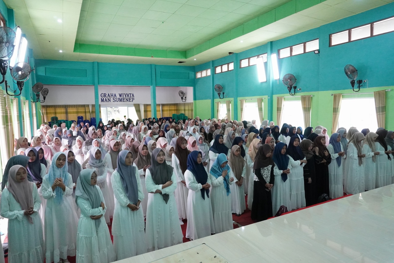 Setelah itu, pembacaan sholawat Nabi Muhammad SAW menggema di seluruh masjid dan diikuti secara bersama-sama oleh seluruh warga madrasah. Momen ini menjadi wujud kecintaan kepada Rasulullah SAW serta sarana mempererat kebersamaan antar warga MAN Sumenep dalam nuansa religius.