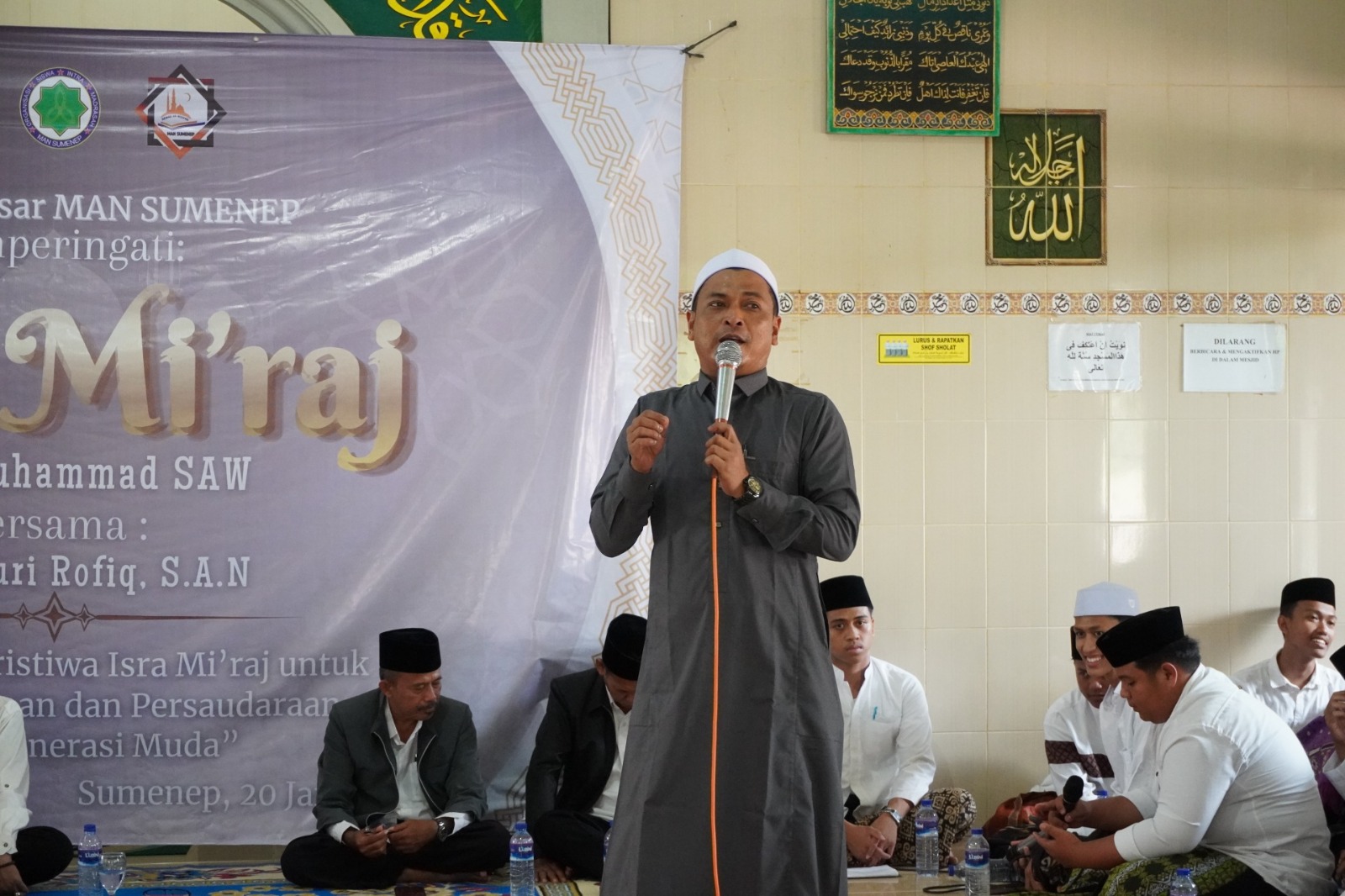 Acara diawali dengan pembukaan, kemudian dilanjutkan dengan pembacaan doa serta pembacaan ayat suci Al-Qur’an. Lantunan ayat-ayat suci tersebut menambah suasana khidmat dan menenangkan, sekaligus menjadi pengingat akan kebesaran Allah SWT dan pentingnya meningkatkan kualitas ibadah. Kepala MAN Sumenep, Drs. H. Zaini Mukhsin dalam sambutannya menuturkan, "Melalui peringatan ini, mari kita tingkatkan kedisiplinan dan kekhusyukan dalam menunaikan sholat agar kehidupan kita senantiasa berada dalam lindungan Allah SWT." Tutur beliau Kepala Madrasah.